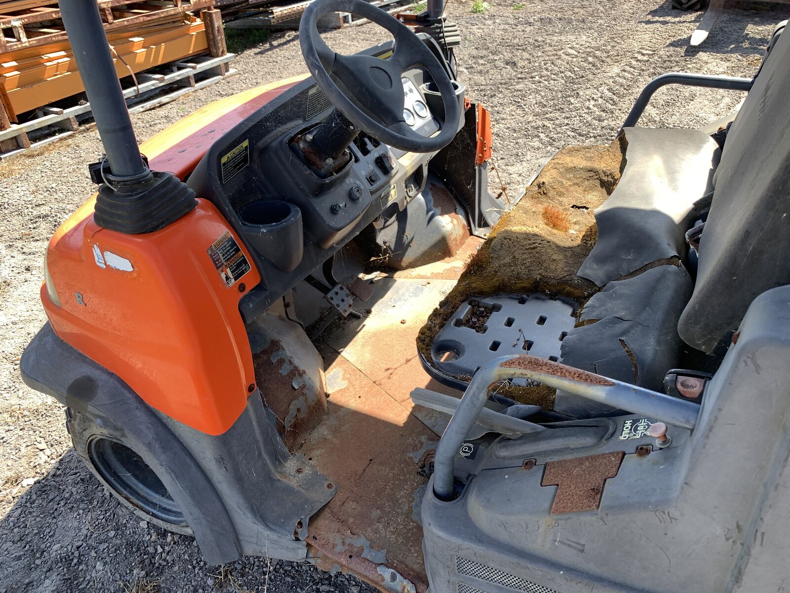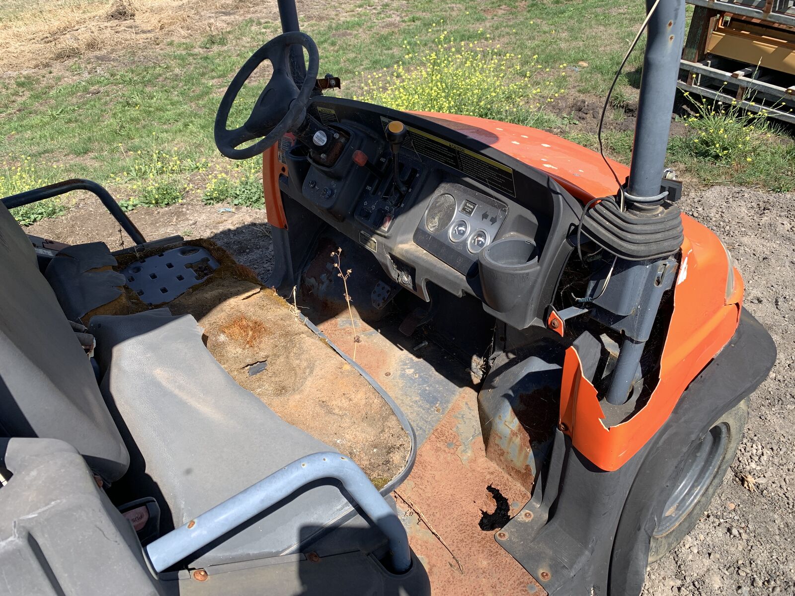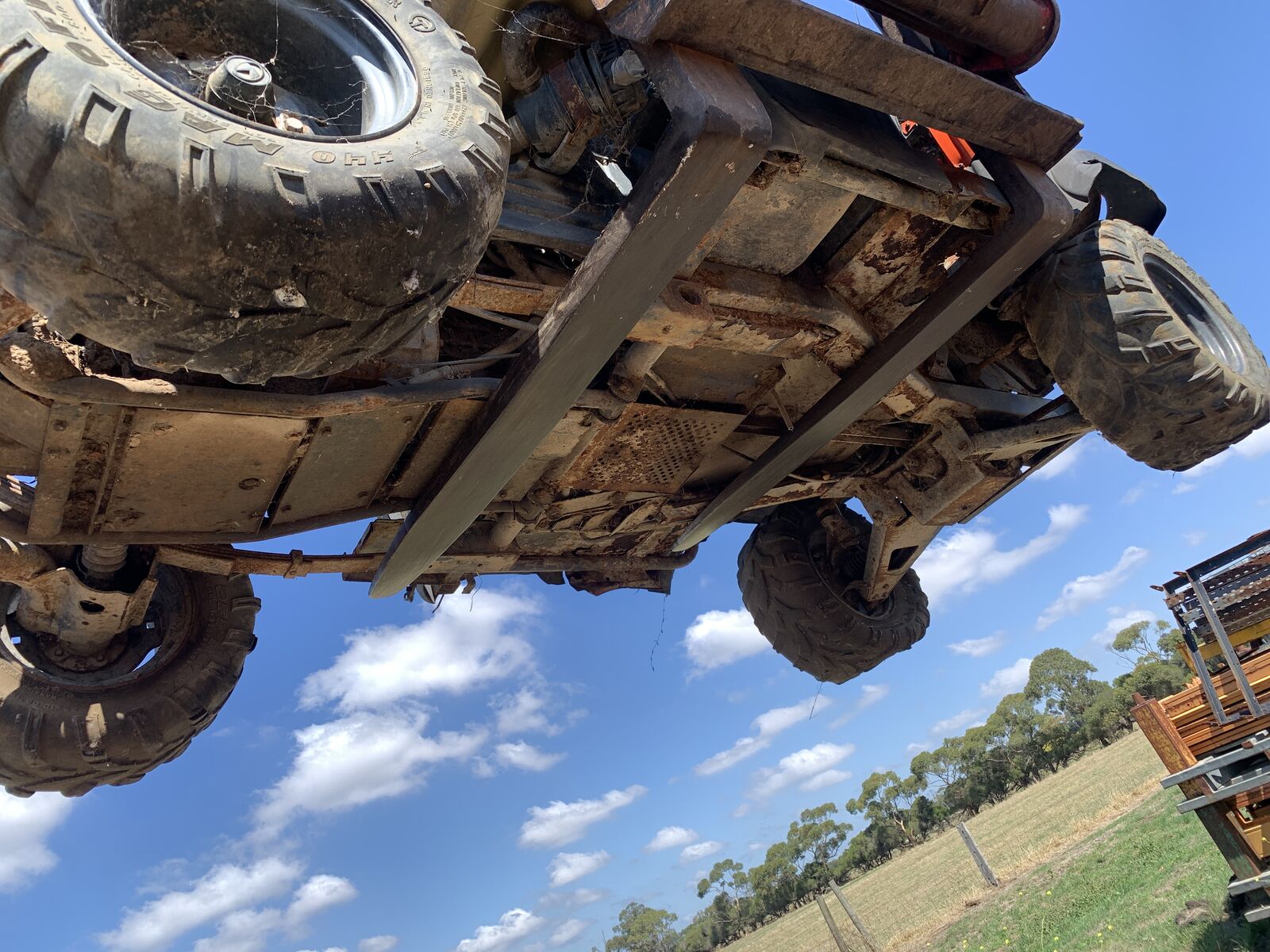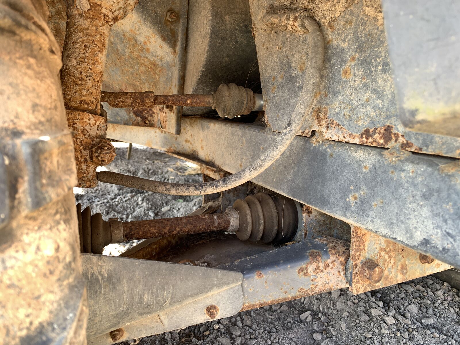 SURFACE RUST UNDER NEATH , FOOLR PANNEL STEEL HAS RUST HOLES , FRAME STILL LOOKS SOLID