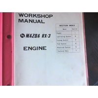 MAZDA RX3 ENGINE TOYO KOGYO SERVICE AND REPAIR MANUAL . MANUAL IN GOOD CONDITION MINOR WEAR HAS ALL SORTS OF HANDY INFORMATION ON SERVICING - OPERATION ETC ETC .MAYBE DIRTY ON COVER AND SOME PAGES FROM STORAGE ,USED OLD STOCK,MAY HAVE DIRTY OR TORN COVER OR PAGES FROM USE,LOOK AT PHOTOS THAT IS WHAT YOU WILL GET,
