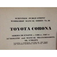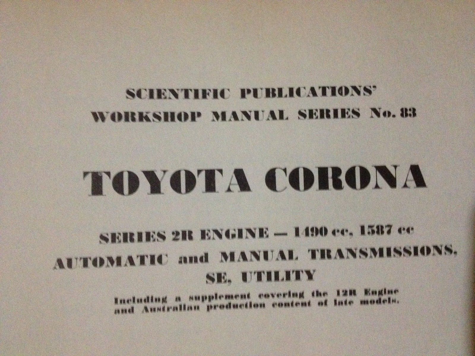 TOYOTA CORONA 2R ENGINE AUTO AND MANUAL SCIENTIFIC SERVICE AND REPAIR MANUAL . MANUAL IN REASONABLE CONDITION HAS ALL SORTS OF HANDY INFORMATION ON SERVICING - OPERATION ETC ETC